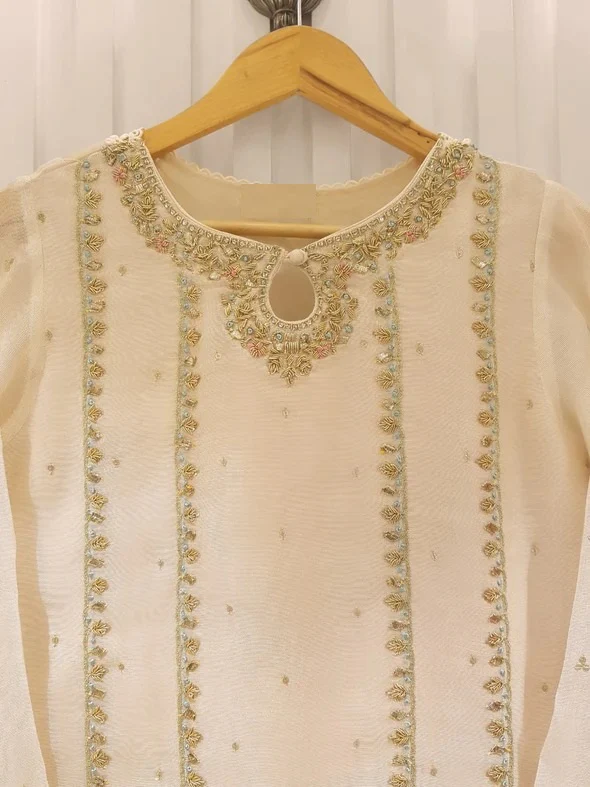 • Fully Embroidered Cotton Net Front Piece & Embellished Neckline