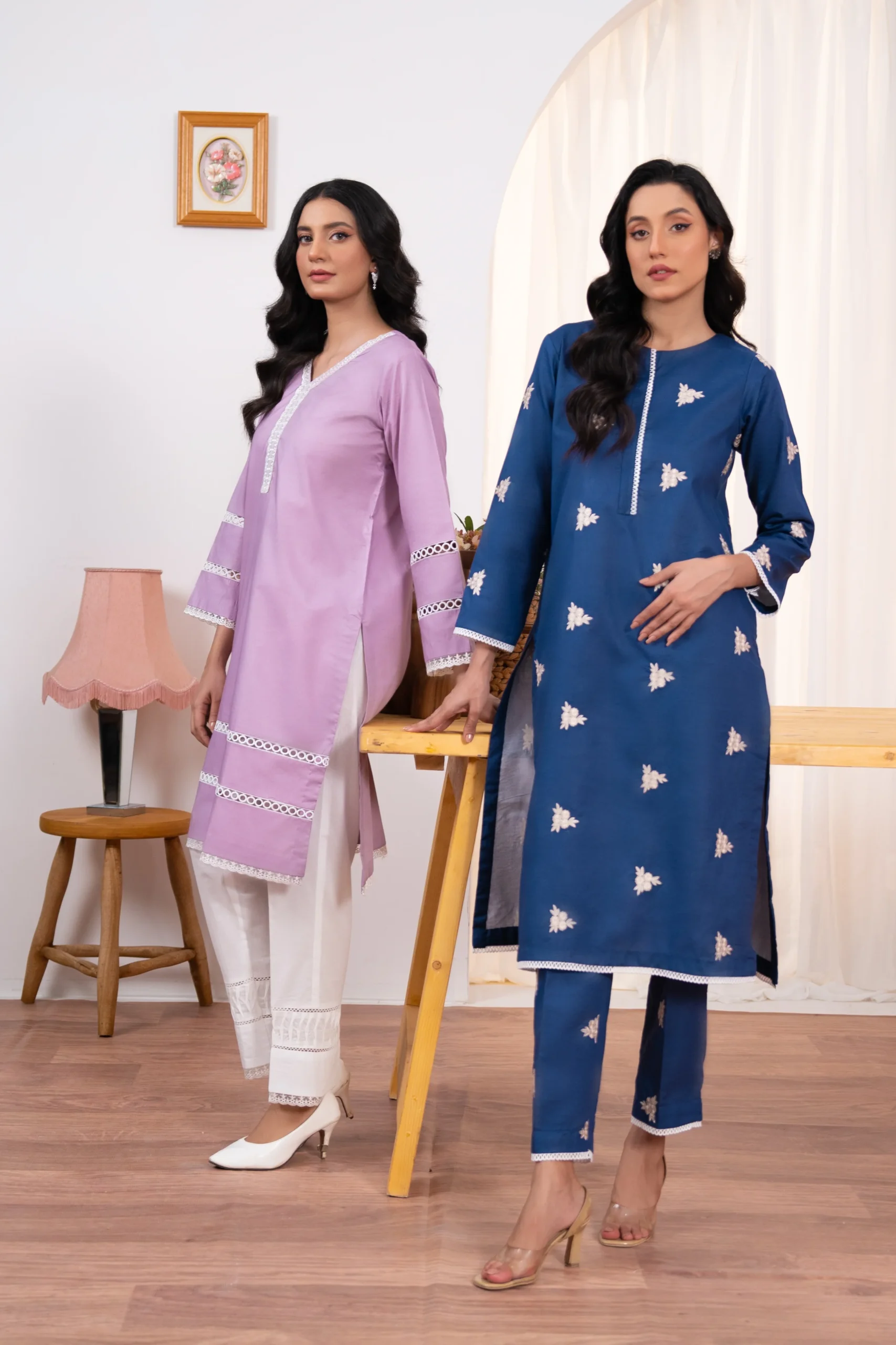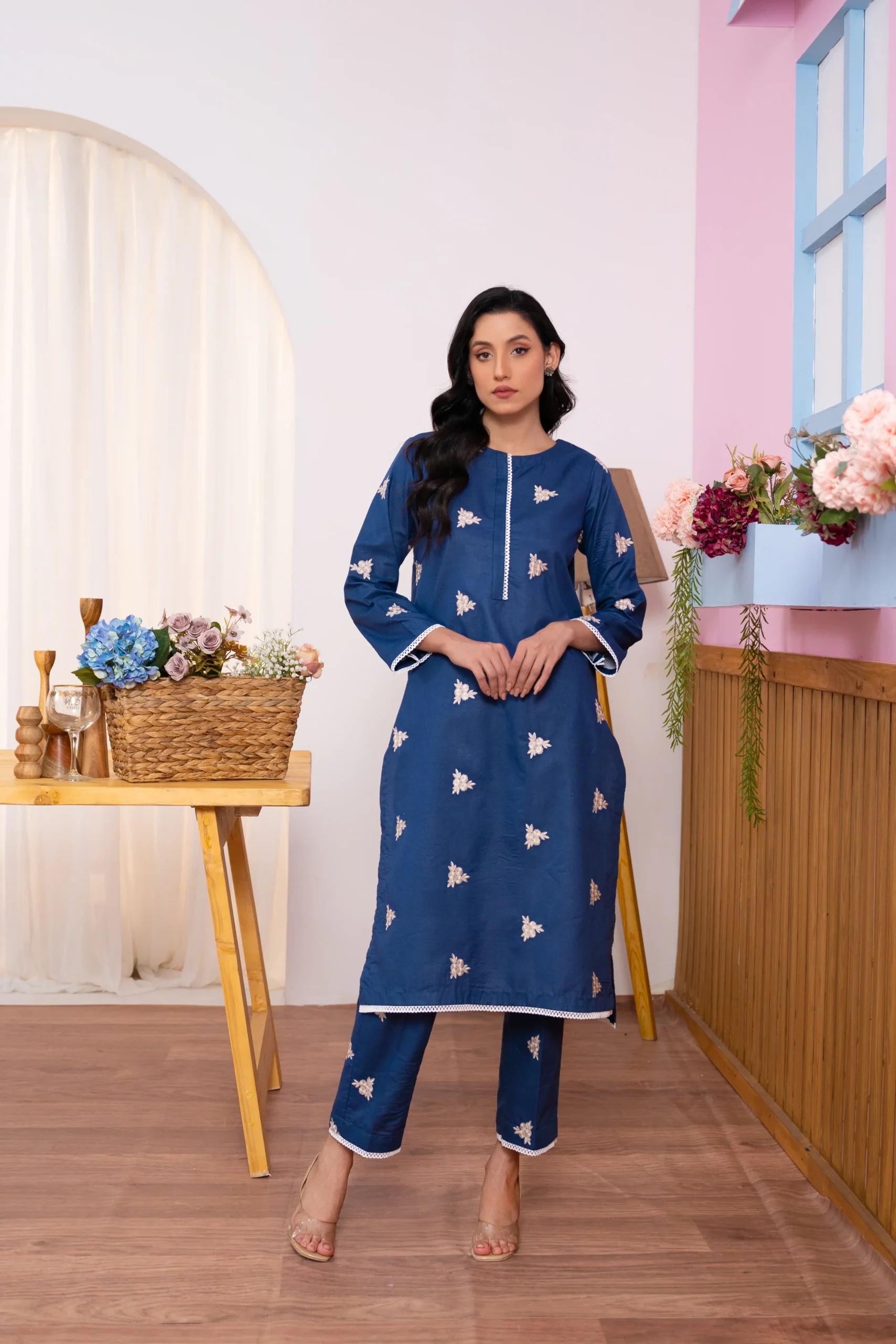 Description Embroidered Shirt and Embroidered Trouser for Summers.