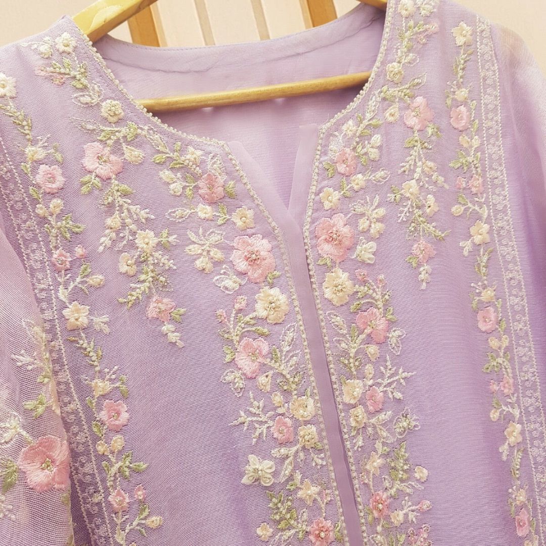 - Organza Front Piece Embroidered Embellished Neckline
